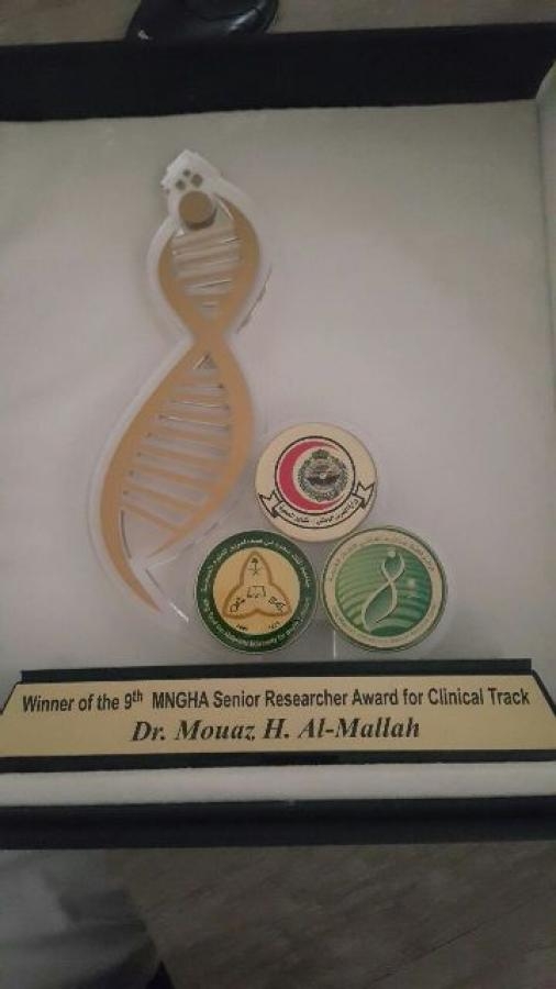 فاز الدكتور مُعاذ حسين الملاح بالمركز الأول لكبار الباحثين الأطباء للعام 2016 في مركز الملك عبدالله العالمي للأبحاث الطبية التابع للشؤون الصحية بوزارة الحرس الوطني في العاصمة السعودية – الرياض.