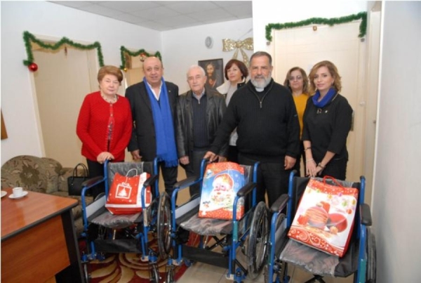 وقدم وفد الروتاري الى ادارة الدار ثلاثة كراسي متحركة مخصصة للمسنين وهدايا عبارة عن مستلزمات وحاجيات شخصية .