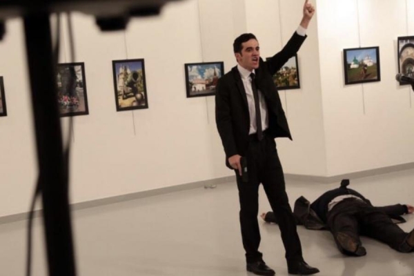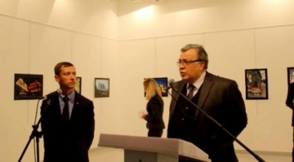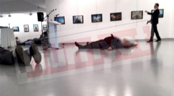بالصور لحظة اطلاق النار على السفير الروسي