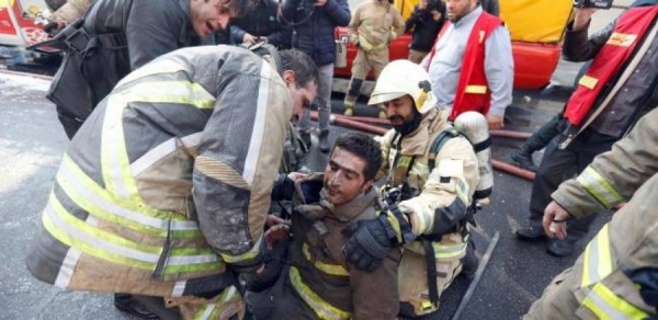 شاهد لحظة انهيار 15 طابقاً بطهران ومقتل 30 إطفائياًشاهد لحظة انهيار 15 طابقاً بطهران ومقتل 30 إطفائياً