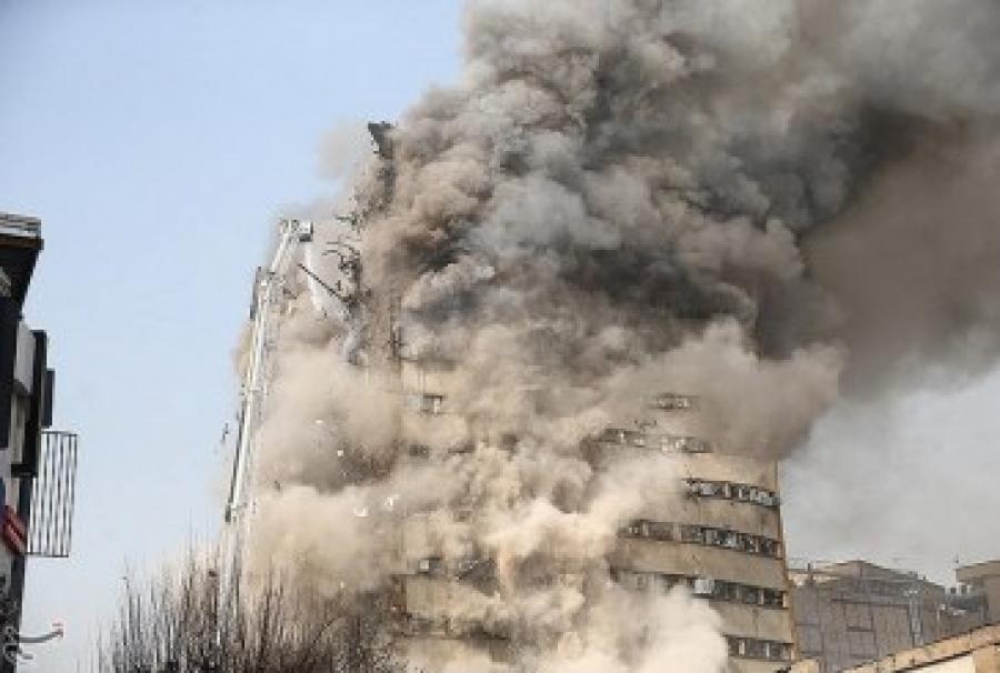 انهار مبنى مؤلف من 15 طابقا في وسط طهران اليوم الخميس بحسب الصور التي بثها التلفزيون الإيراني الرسمي بشكل مباشر بعدما اندلعت النيران في طوابقه العليا. وقد أدى الحادث إلى مقتل 30 رجل إطفاء.