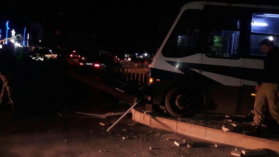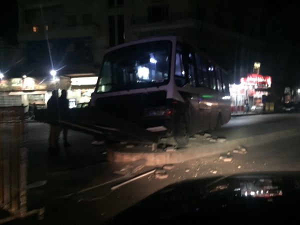 بالصور باص لنقل الركاب يجتاح القاطع الوسطي للطريق حيث تحطمت لوحة اعلانية في ساحة النجمة