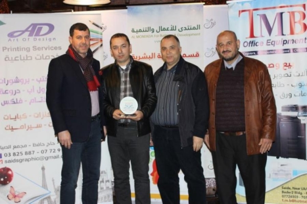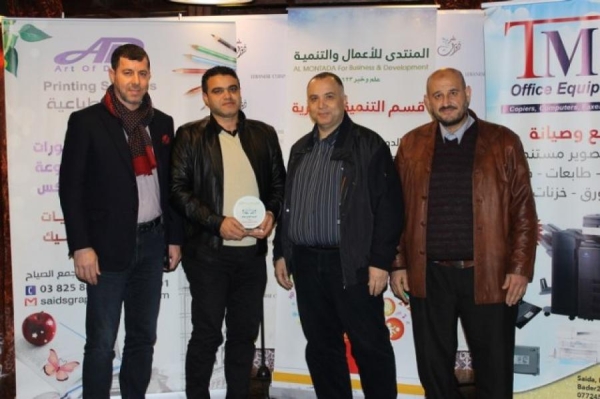 وكذلك تم تقديم درع تكريمي لعضو المنتدى الاستاذ فادي عزام على رعايته لنشاط العشاء الذي تم سابقا.