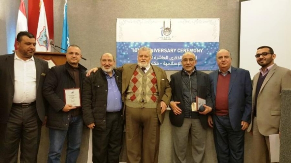 وفي الختام، تم تقديم دروع للدكتور هاني البنا وهاني ابو زينب ولناصر الاسير الذي ألف انشودة للمناسبة من اداء عاملي وموظفي الاغاثة.
