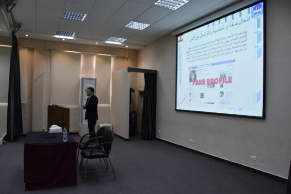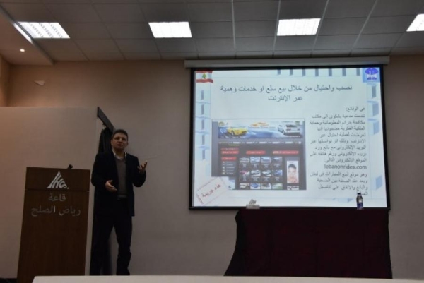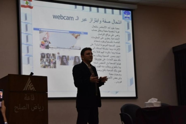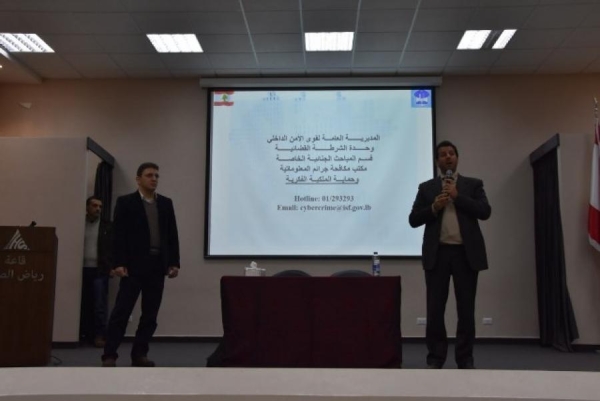 تلاها تقديم محاضرة عن الأنترنت الآمن قدمها الملازم أول المهندس أيمن تاج الدين يعاونه الرقيب أول فريديريك بلعة، حيث جرى الحديث عن المشاكل والأفخاخ التي يمكن أن نقع بها على الشبكة العنكبوتية وكيفية حماية أنفسنا منها.