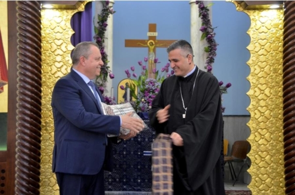 كهنة ووكلاء وقف رعيّة القديس جاورجيوس للروم الملكيين الكاثوليك يكرمون رئيس مدرسة الفنون الإنجيلية في صيدا