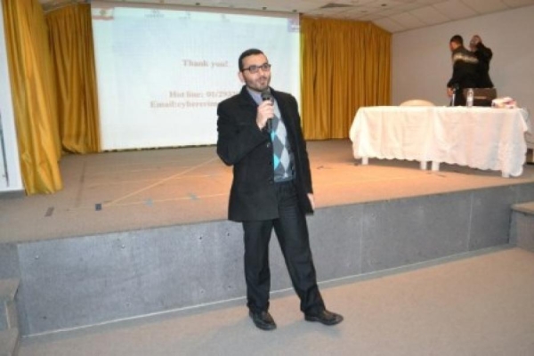 تلاها تقديم محاضرة عن الأنترنت الآمن قدمها الملازم أول إلياس داغر حيث جرى الحديث عن مخاطر الإنترنت وكيفية حماية أنفسنا من المشاكل التي تعترضنا، كما أضاف أن الشبكة العنكبوتية ليست مكان سري بل هي مكان عام يجب أن لا نستخدمه للأمور الخاصة، كما أعطى داغر عدد من الأمثلة التي حدثت في لبنان وتعرض أشخاص أساؤوا استخدام الإنترنت للسجن والمساءلة وغيرها.