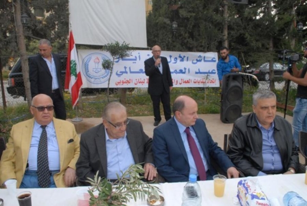 بمشاركة رئيس الاتحاد العمالي العام الدكتور بشارة الأسمر وعدد كبير من القيادات النقابية اقام اتحاد نقابات العمال والمستخدمين في لبنان الجنوبي حفل استقبال تكريمياً للنقابيين والعمال في منتزه حجازي في شرحبيل لمناسبة الأول من ايار عيد العمال حضره :مفتي صيدا واقضيتها الشيخ سليم سوسان ، ممثل الرئيس فؤاد السنيورة مدير مكتبه طارق بعاصيري، ممثل النائب بهية الحريري رئيس جمعية تجار صيدا وضواحيها علي الشريف ، رئيس بلدية صيدا المهندس محمد السعودي ، نائب رئيس المكتب السياسي للجماعة الاسلامية الدكتور بسام حمود ، منسق عام تيار المستقبل في الجنوب الدكتور ناصر حمود وممثل امين عام التيار احمد الحريري للشؤون الصيداوية رمزي مرجان واعضاء مكتب منسقية الجنوب وممثلون عن المكتب العمالي للتيار وعن المكتب العمالي لحركة امل ورئيس تحاد نقابات عمال فلسطين في لبنان صالح العدوي ، وامين عام تجمع المؤسسات الأهلية في صيدا والجوار ماجد حمتو وممثلون عن عدد مؤسسات المجتمع المدني والأهلي وعدد من اعضاء المجلس البلدي للمدينة واعضاء في هيئة مكتب والمجلس التنفيذي للإتحاد العمالي العام وعدد من رؤساء الاتحادات ورئيس اتحاد الجنوب عبد اللطيف ترياقي واعضاء المجلس التنفيذي وعدد من رؤساء النقابات العمالية في صيدا والجنوب .