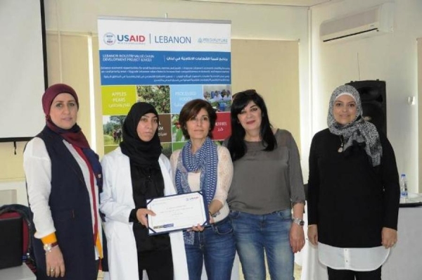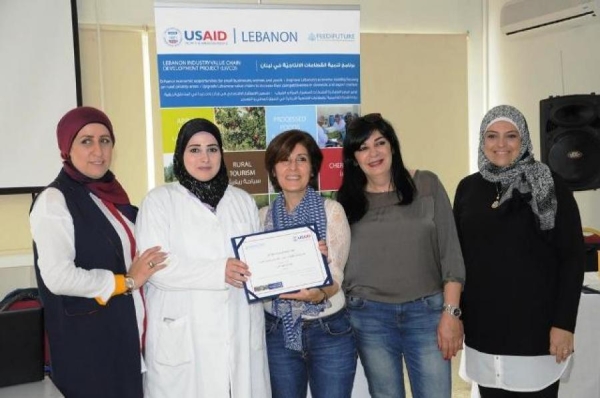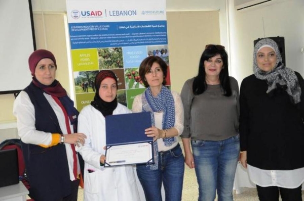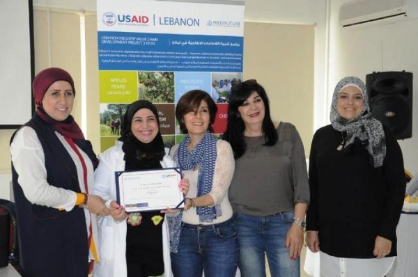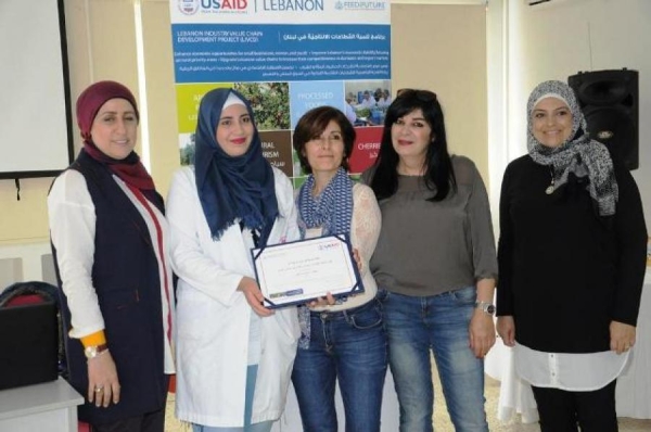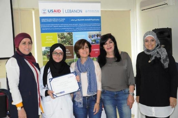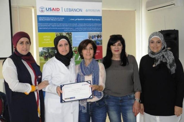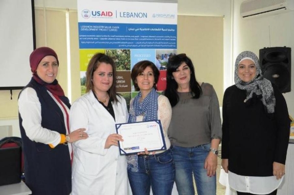 وفي ختام العرض قدمت الآنسه جورجيت لحود ممثله USAID شهادات على المتدربات،
