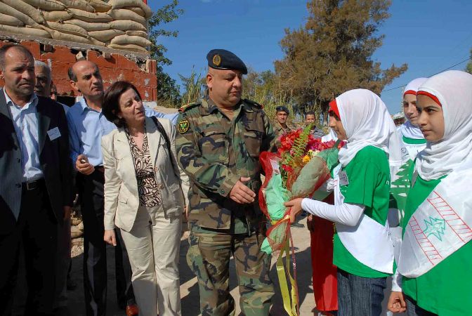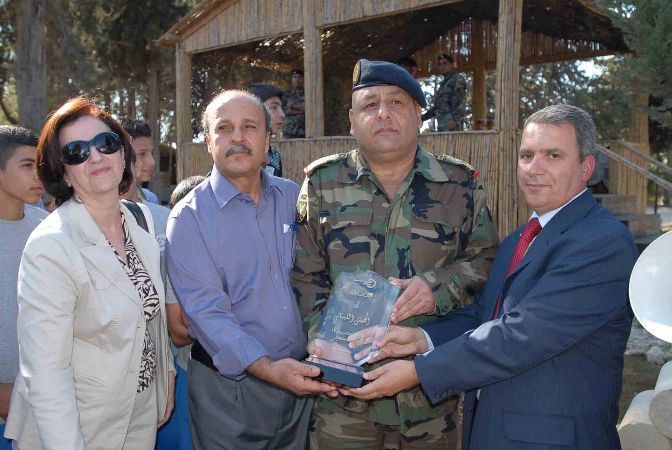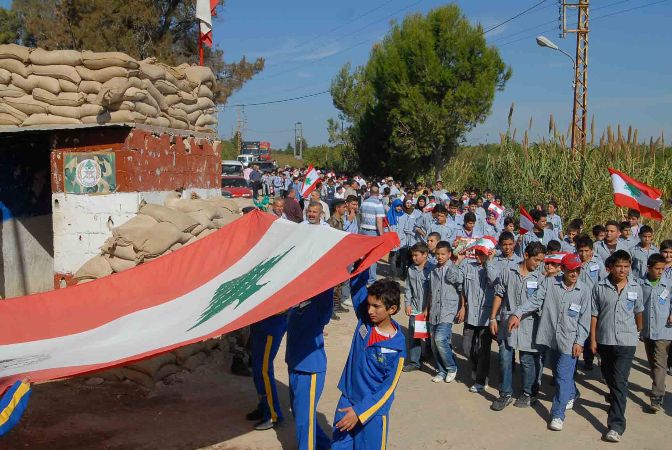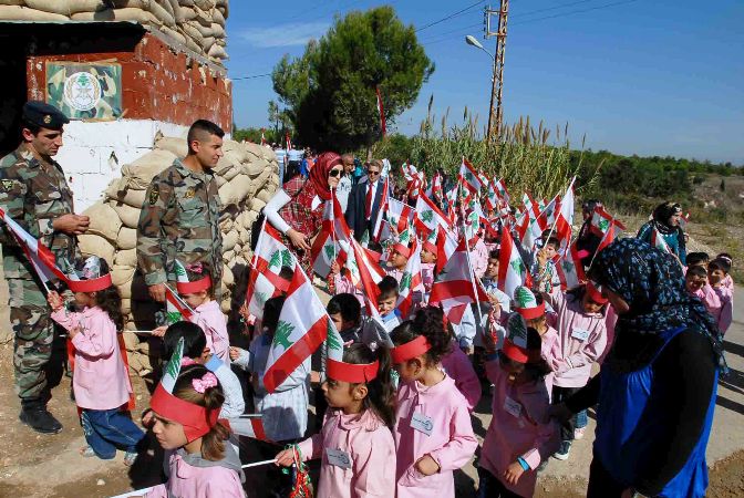 ورفع الطلاب المشاركون الأعلام اللبنانية وملصقات تحمل شعار الجيش وعيد الاستقلال ، وتوجهوا الى قائد الموقع العقيد حسان سعد حيث قدموا له باقة من الورد وسلموا الأعلام اللبنانية الى عدد من الضباط والجنود .