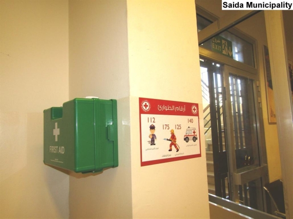 في مبادرة مشتركة من الصليب الأحمر الألماني واللبناني وبدعم من المؤسسة الألمانية للتنمية، تم تجهيز مبنى بلدية صيدا بمعدات خاصة لحالات الطوارىء والمساعدة في عمليات الإنقاذ والإسعاف والإطفاء داخل المبنى.