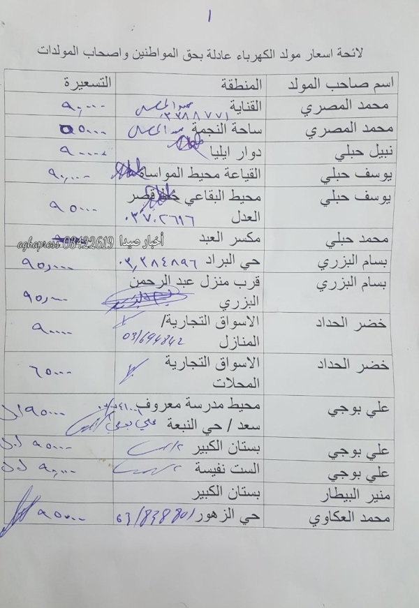 صدرت عن لجنة اصحاب المولدات الكهربائية في صيدا تسعيرة الاشتراك عن شهر تموز 2017 وهي كالاتي: