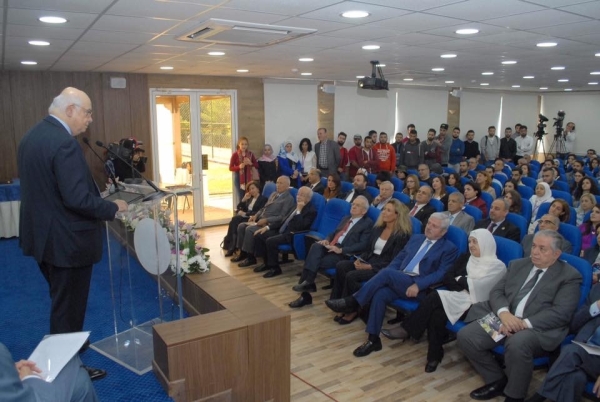 بعد النشيد الوطني اللبناني والوقوف دقيقة صمت تحية لروح الرئيس الشهيد رفيق الحريري تحدث رئيس الجامعة الدكتور احمد صميلي فقال: نحتفل كل سنة في ذكرى المؤسس كي لا ننسى ولننفض عن ذاكرتنا ووجداننا غبارٌ من تراكمات سنة خلت لتبقى صورة من اختار طريق الخير حاضرة كما هي ..ولنرمم ما اصاب الذاكرة من انداب ما خلفته نبال من امتهن تشويه الحقيقة... ولنؤكد بان الحبة نمت واصبحت سنبلة .. وأن السنبلة ستنمو بمشيئة الله لتصبح سبع سنابل ..نحتفل لأنه من واجبنا ان لا ننسى من حمل وكافح من اجل سلام في ارض سئمت من ان تروى بدماء شباب اغرته اوعود العبثية وجنات خلد لا يملك مفاتحها بشر ..... من حمل مشروع وطن حلم ان يكون اساسه الإنسان كقيمة مادية ومعنوية وفكرية وليبني انسانه جسر عبور من ماض اشبع بالشعارات الكاذبة الى مستقبل الاحتمالات الواعدة. نحتفل كي لا ننسى من ضحى بماله وحياته ليبقى لبنان مثلا ورسالة لعالم يتخبط بانقسامات وحروب عبثية لأجل مادة رخيصه اوانتصار لتاريخ مشبوه أو لقتل ابناء اليوم ثارا لجرائم الأمس ..وحاضرة معنا في هذا اللقاء ولو عن بعد من كانت رفيقة درب الشهيد من عاشت احلامه وهواجسه بعيدا عن اعين المتطفلين والمزايدين والمتربصين الحافظة لأمانته الحريصة على ان تبقى الشموع التي اضاءها على الدروب مضيئة الصابرة على الام انتظار احقاق الحق والقادرة اكثر من اي كان ان ترشدنا الى اعماق الشخص وانسانيته وتساعدنا في نفخ الغبار المتراكم على الصورة وازالة ندب سهام الجاهلين عن الذاكرة ... ...