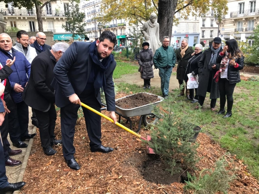 قام رئيس بلدية بقسطا إبراهيم مزهر بغرس أرزة لبنان وسط العاصمة الفرنسية باريس داخل حديقة المستديرة الخامسة - 5eme arrondissement.