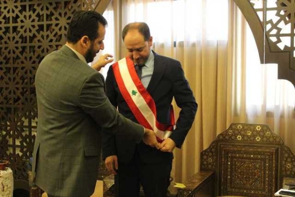 وقد هنّأ الوفد المحافظ بمناسبة ذكرى استقلال لبنان وبمناسبة ذكرى المولد النبوّي الشريف وقدّموا له لوحة فنيّة تحمل صورته الشخصيّة مرسومة بألوان متناغمة أشرف عليها الفنّان أحمد الدّنان. كما قدّموا له وشاح العلم اللبنانيّ ليضعه وساماً على صدره بالإضافة إلى الحلو الخاص بالمولد النبوّي الشريف.