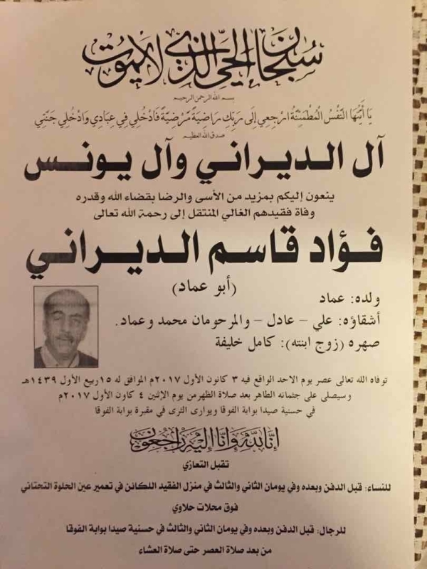 وفاة فؤاد قاسم الديراني