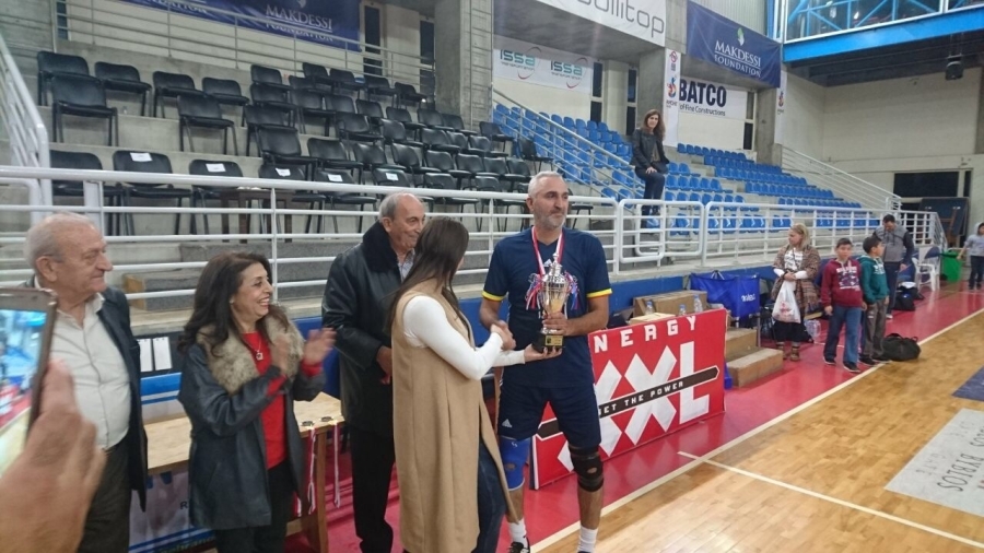 الكابتن كمال حبلي يتسلم كأس افضل لاعب في البطولة من بطلة لبنان في الرماية