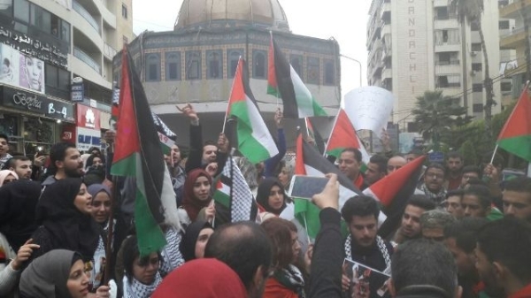 احتشد عدد كبير من الطلاب الجامعيين والشباب في مدينة صيدا، وجابوا في مسيرة شوارع المدينة تنديداً بقرار الرئيس الأميركي دونالد ترامب بنقل السفارة الأميركية إلى القدس.