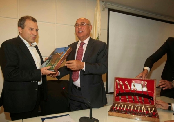 كما قدم صالح للوزير باسيل هدية تذكارية من الصناعات الحرفية الجزينية