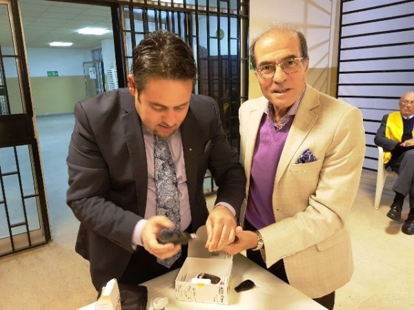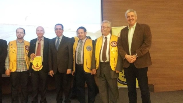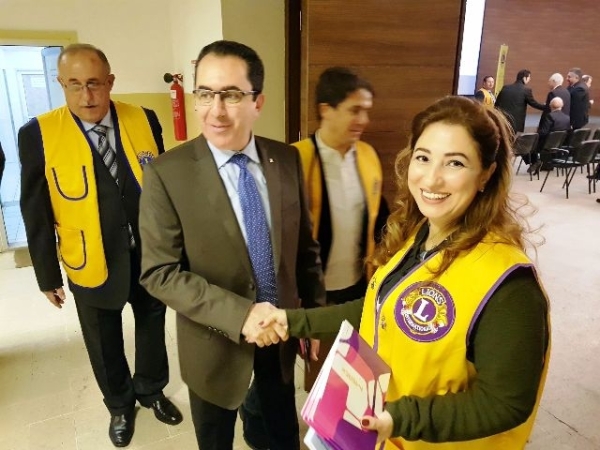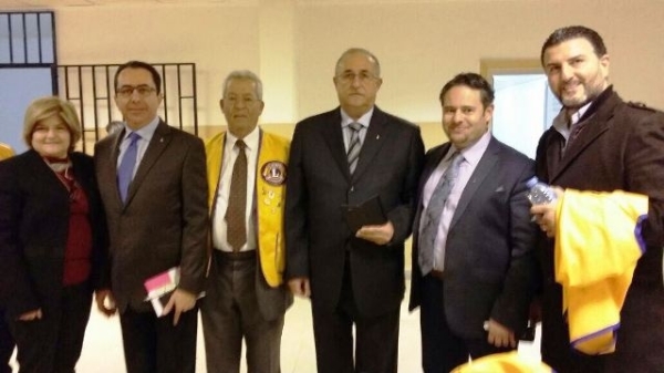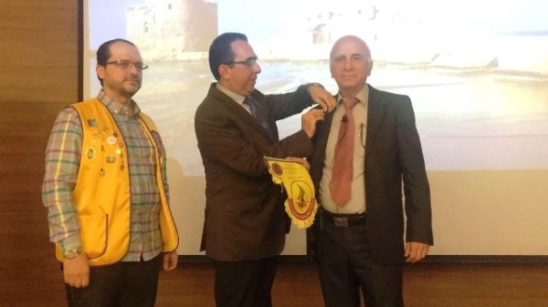 وقام رئيس النادي زياد شما بتقديم علم الليونز للدكتور كنعان عربون امتنان لمشاركته بهذا النشاط ثم قلّده حاكم أندية الليونز شارة الحاكم عربون شكر وتقدير .