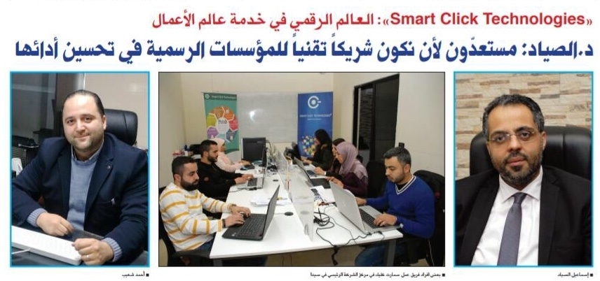 في عالم سريع التطور، تطغى فيه الأنظمة الرقمية على مختلف وجوه حياتنا وتدخل في العديد من الأعمال والقطاعات، يصبح من البديهي التفكير بكيفية تطويع هذه التكنولوجيا في خدمة الأعمال وتطويرها وإيجاد الحلول السريعة والناجحة لإدارتها بشكل فعّال. ولتحقيق كل ذلك، تأسست شركة سمارت كليك تكنولوجي «Smart Click Technologies» في صيدا والمتخصصة في مجال البرمجة وإدارة المحاسبة والجودة وتقديم أفضل الحلول للأعمال الكبيرة والمتوسطة والصغيرة.