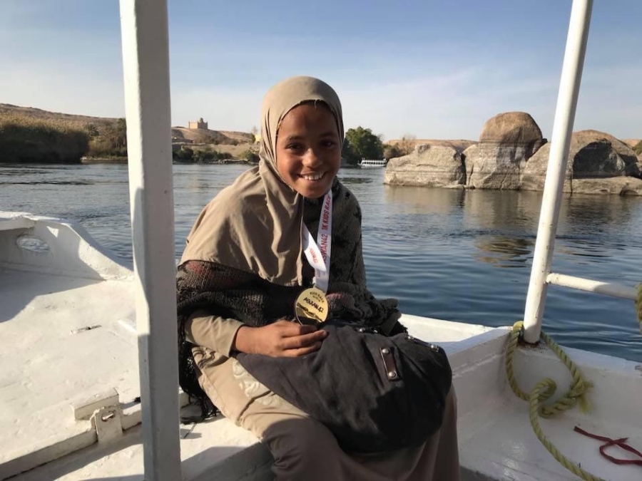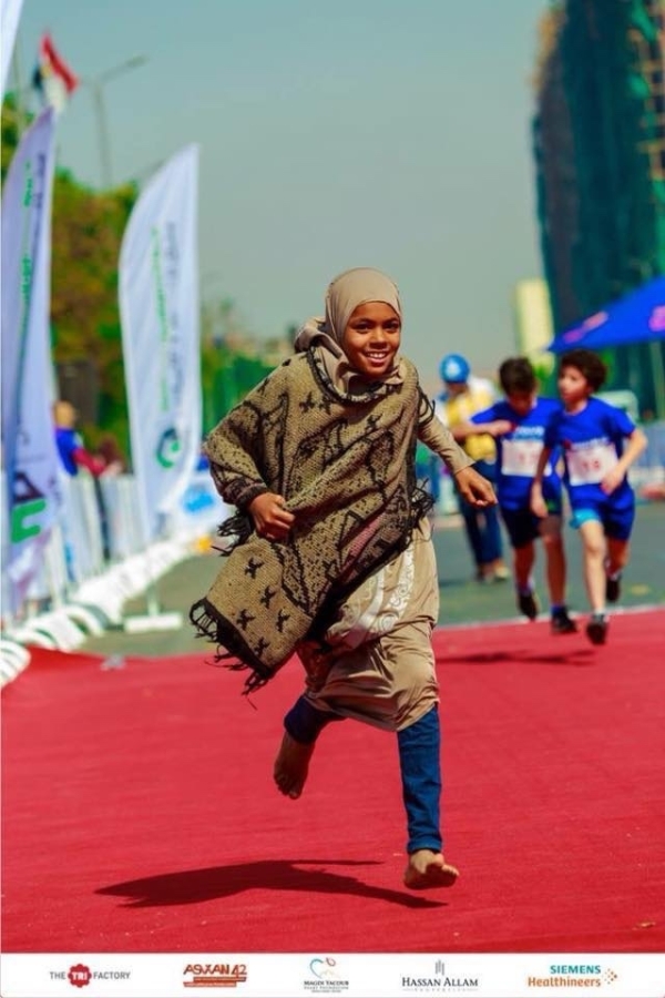صورها حافية القدمين منتصرة وإن في سباق خيري، كسرت الفقر الذي أتعب سنواتها العشر، وانتشرت بشكل واسع على مواقع التواصل في مصر، منذ يوم الخميس، على الرغم من أن الماراثون أقيم يوم الجمعة الماضي.