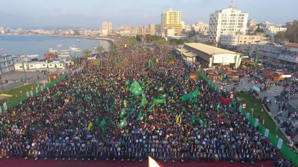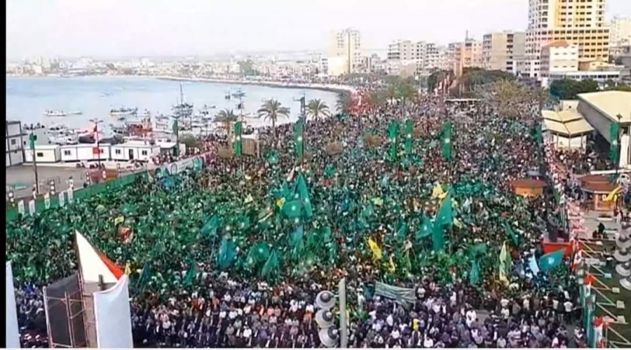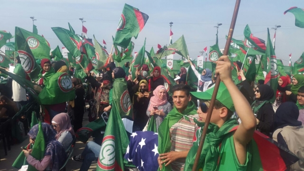 وخاطب الرئيس هذه الحشود عبر شاشة كبيرة، مشيراً الى أسباب حالت دون حضوره شخصياً سيكشف عنها لاحقاً.