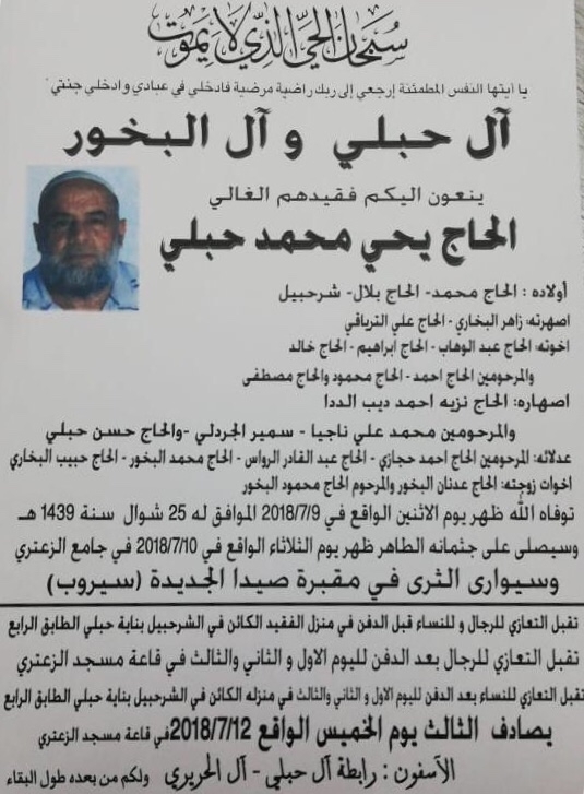 وفاة الحاج يحي محمد حبلي