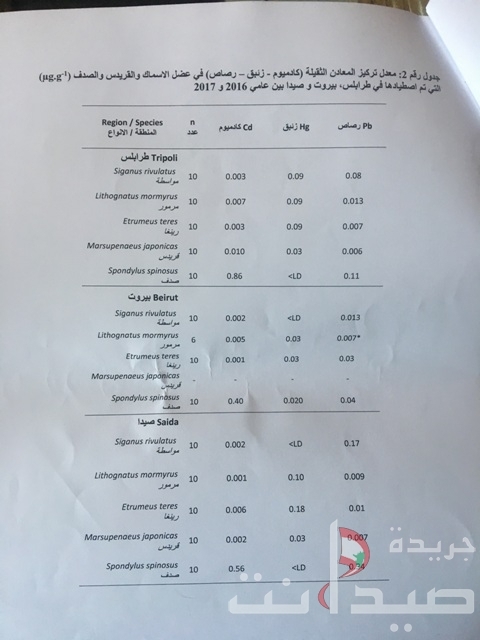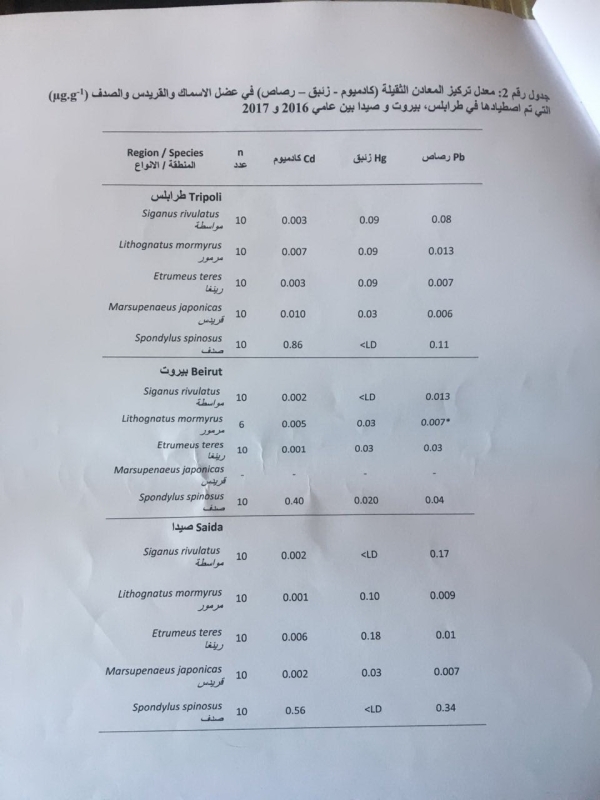 واوضح ان "دراسة اعدت ضمن أطروحة دكتوراه ما بين لبنان وجامعة ULCO في فرنسا، أظهرت وجود المعادن الثقيلة بتركيزات (رصاص، زئبق، كادميوم) بمعدل أدنى من المسموح بها عالميا في عضل الأحياء البحرية (سمك، قريدس، صدفيات) المأخوذة من أماكن عدة على طول الشاطئ وفي فترات زمنية مختلفة"، مطمئنا اللبنانيين الى أن "لا خطر على السمك البلدي في لبنان ويمكن استهلاكه بطريقة طبيعية".