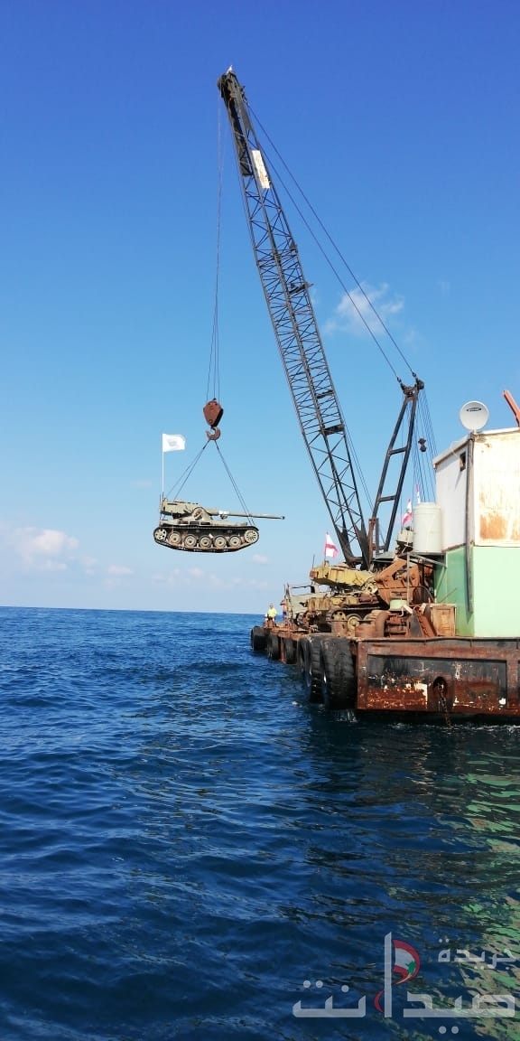 وفي وقت مبكر من صباح السبت تم اغراق الآليات العشر في محيط " الزيرة " في عملية استغرقت 13 ساعة من العمل المضني المتواصل بالتعاون مع شركة داني خوري التي قدمت عوامة بحرية خاصة لنقل المعدات الثقيلة مزودة برافعات .