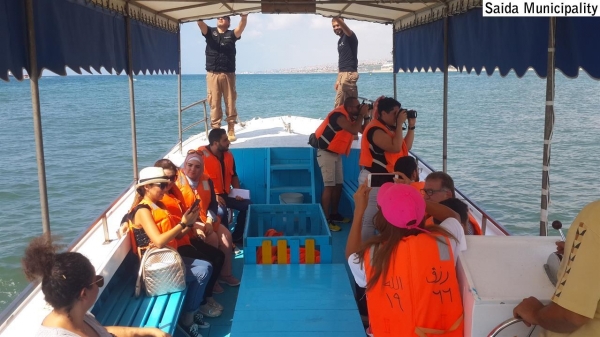 ثم إستكملت الجولة بمسارها الثاني والذي شمل القلعة البحرية – ثم إستقل المشاركون قارب نزهة لزيارة بحرية لمعالم الزيرة (جزيرة صيدا – مشروع الحديقة المائية) – واختتمت بجولة في معبد أشمون الأثري الفينيقي شمالي صيدا.