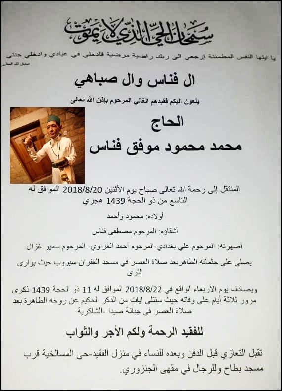 وفاة مسحر صيدا في رمضان الحاج محمد محمود موفق فناس