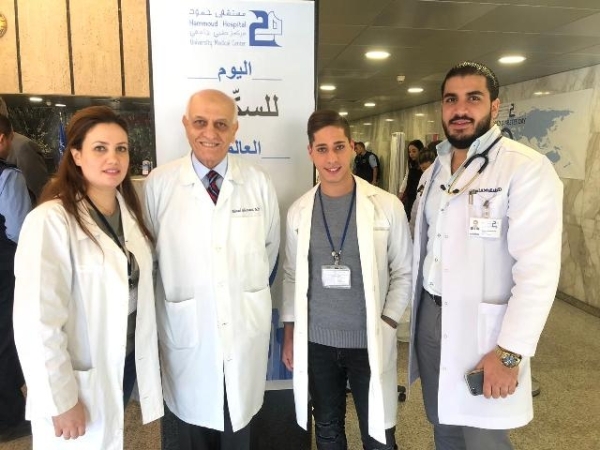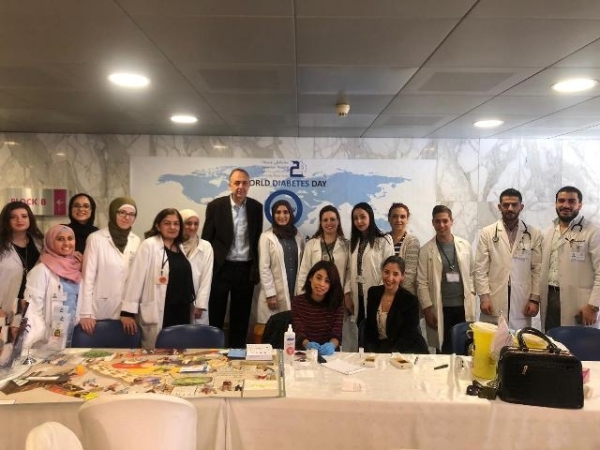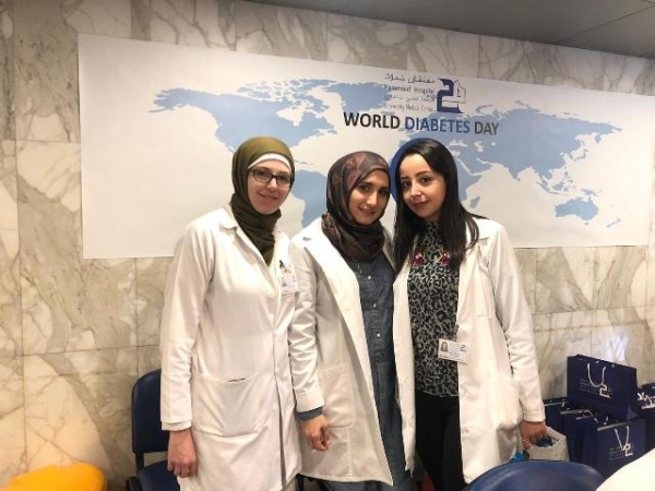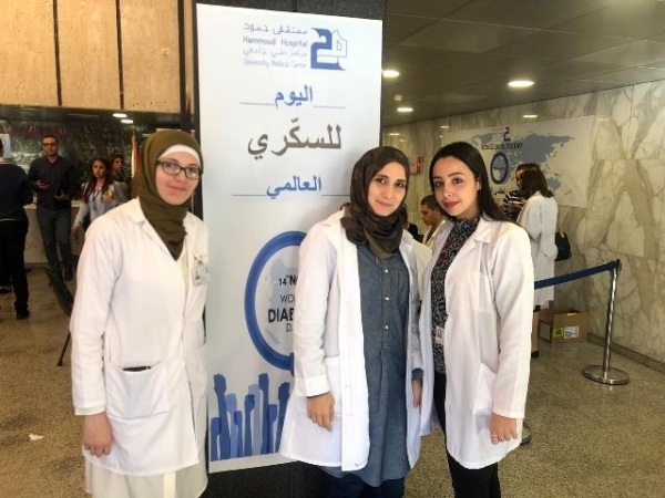لمناسبة اليوم العالمي للسكري نظم قسم الغدد الصماء والسكري في مستشفى حمود – مركز طبي جامعي حملة توعية وكشف مبكر على مرض السكري تضمن فحوصات مجانية لسكر الدم وتخزين السكر والدهنيات مع نصائح صحية وغذائية.