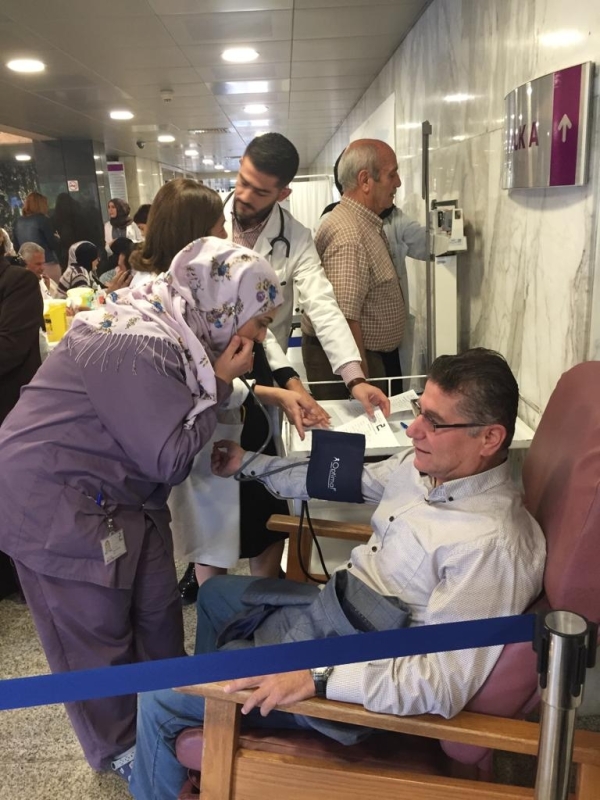 وشهدت الحملة التي امتدت على مدى اربع ساعات اقبالاً من المرضى ومن زوار المستشفى حيث جرى تقديم نحو 100 فحص تخزين سكري وفحص مجاني للدهنيات بالتعاون مع شركة فتال غروب ، شركة بروفارما . فيما تولى الأطباء تقديم النصائح الطبية وقدم اخصائيو التغذية نصائح حول الأغذية المناسبة لمرضى السكري .