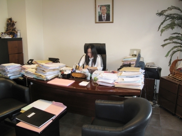 عندما تدخل الى مكتبها تتعجب من كثرة الملفات على طاولة المكتب وفي الخزائن وفي الجوارير، تسأل نفسك كيف يمكن إنجاز هذه الملفات رغم كثرتها وهي على مدار السنة تزيد وتنقص، ليأتيك الجواب بأنها تنكب على انجاز المعاملات ومتابعتها والتدقيق فيها والاشراف عليها بنفسها يعاونها في ذلك فريق عمل تديره بكثير من الخبرة والكفاءة العالية حيث عملت على تدريب فريق العمل هذا لسنوات طويلة الى أن أصبح لديه القدرة على مساعدتها في انجاز مختلف أنواع المعاملات والملفات الادارية والمالية وخلافه.
