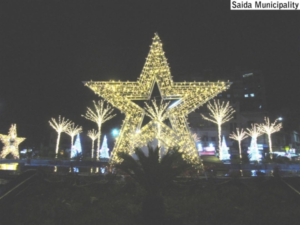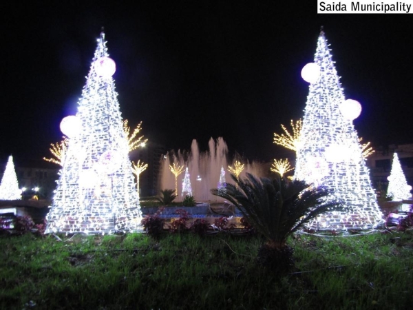 في إطار الإستعدادات المتواصلة في صيدا لإستقبال عيدي الميلاد ورأس السنة الميلادية، أضاءت بلدية صيدا ساحة النجمة الرئيسية في المدينة بمعالم الزينة الميلادية المميزة حيث تم وضع مجسمات ترمز للمناسبة في وسط الساحة حيث النافورة الواقعة قبالة القصر البلدي.