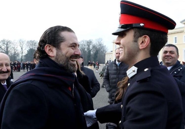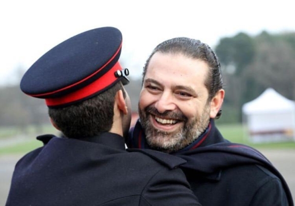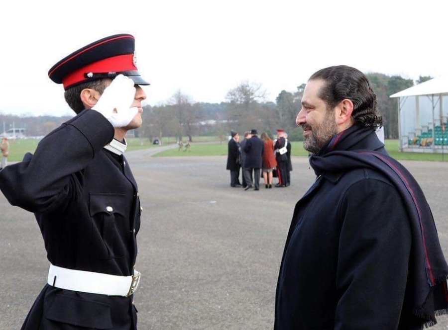 في لقطة معبرة، برزت اليوم الصورة التي التقطت لنجل رئيس الحكومة المكلف سعد الحريري حسام وهو يؤدي التحية العسكربة لوالده في يوم التخرج من كلية "ساندهيرست" العسكرية في بريطانيا.