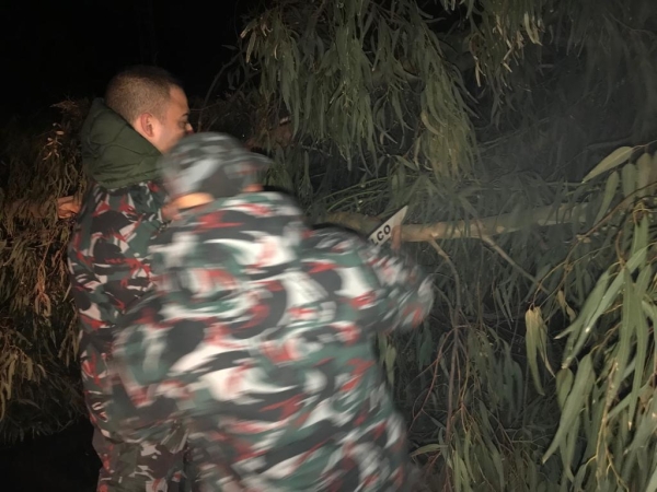 و فوج اطفاء صيدا عمل على تقطيع وسحب اشجار من وسط الطريق مقابل مدرسة البهاء، بعد ان كانت الاشجار قد قطعت الطريق على المواطنين، وتم تأمين المكان