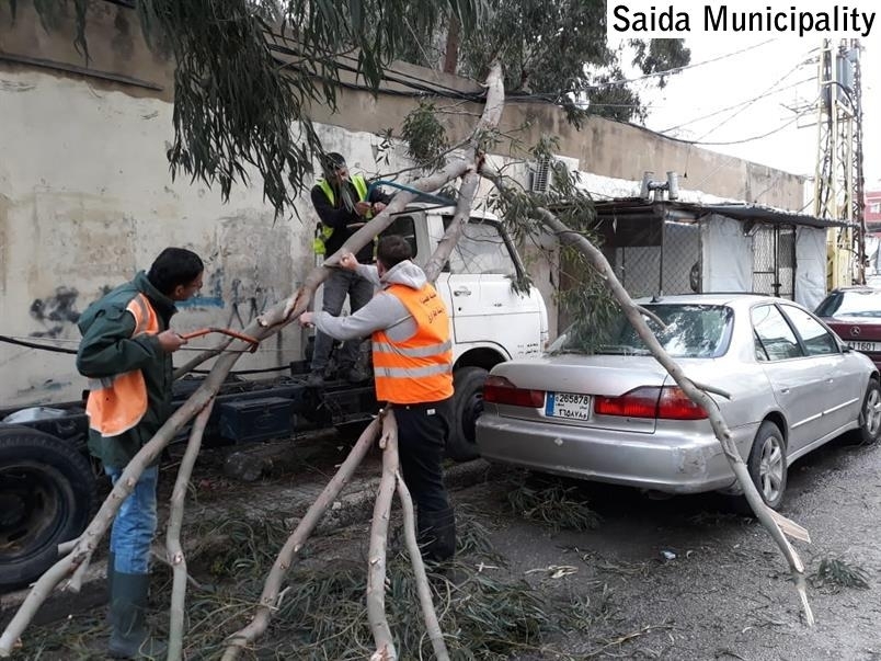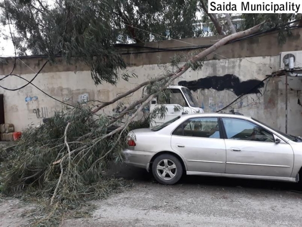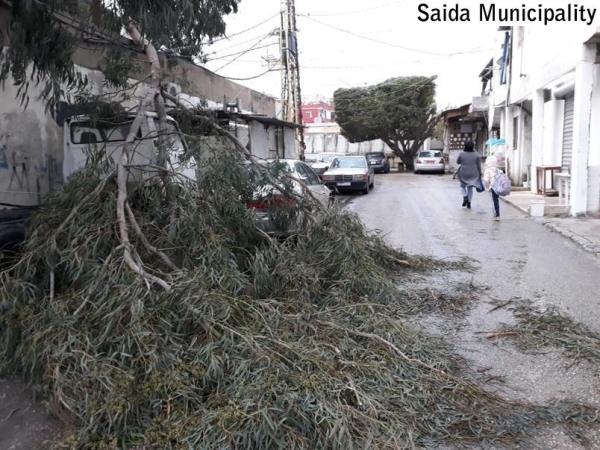 قامت فرق طوارىء بلدية صيدا بالعمل على إزالة أضرار العاصفة الهوائية التي هبت مساء وحتى ساعات الصباح في منطقة صيدا . وفي محلة التعمير قامت الفرق بإشراف المراقب أحمد قاسم بإزالة فروع كبيرة من الأشجار سقطت على بعض السيارات ما أدى لقطع جانب من الطريق.