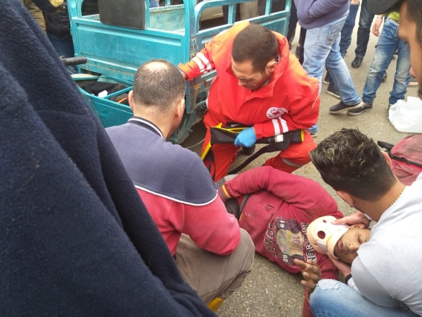 وقع حادث سير على الطريق البحرية مقابل قلعة صيدا حيث صدمت جبالة باطون شخصين كانا يستقلان دراجة كهربائية "توك توك " مما ادى الى إصابتهما بكسور في رجليهما.