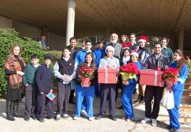 فيما توجه وفد من طلاب الثانوية من المراحل الابتدائية والمتوسطة والثانوية الى دار العناية في الصالحية لمعايدة اسرة الدار وتقديم الهدايا والحلوى اليهم ومشاركتهم فرحة الميلاد .