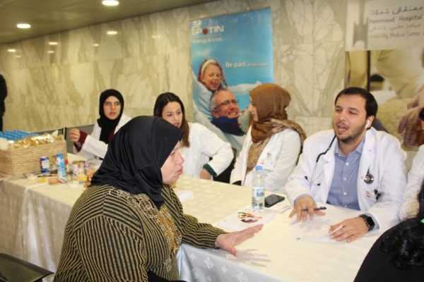 لمناسبة اليوم العالمي لأمراض الكلى نظم "مستشفى حمود - مركز طبي جامعي " بالتعاون مع شركة "Julphar" حملة توعية حولها في صالون المستشفى الرئيسي ، تخللها فحوصات مجانية ونصائح طبية وغذائية للمرضى .
