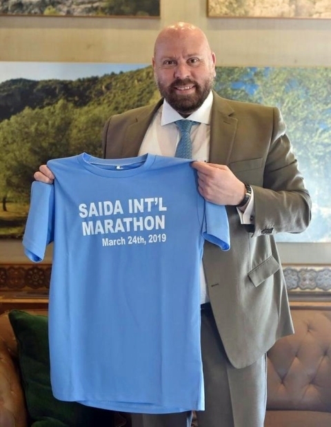 عشية ماراثون صيدا الدولي الثاني الذي تنظمه "جمعية صيدا انترناشيونال ماراثون " يوم الأحد في ٢٤ آذار برعاية رئيس مجلس الوزراء سعد الحريري وتحت شعار "منركض للبيئة والسلام" سلمت وفود من الجمعية وممثلون عنها عددا من الفاعليات والمسؤولين في الجنوب والشمال والبقاع والجبل وبيروت قميص الماراثون "MARATHON SAIDA INT’L " .