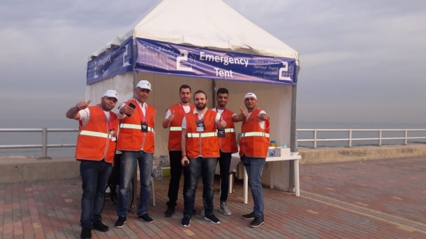 تحت شعار " لأن الصحة ثروة الحياة.. نركض لصحة افضل " شارك مستشفى حمود - مركز طبي جامعي في ماراثون صيدا الدولي الثاني بأكثر من ١٢٠ متسابقا من موظفيه والعاملين فيه ، فيما واكب فريق من أطباء وممرضي المستشفى الماراثون من خلال مستشفى ميداني كبير توزع على ثلاث نقاط رئيسية في مسار الماراثون : الأولى قرب نقطة الانطلاق والوصول لإستقبال العدائين المحترفين ، والثانية قرب جامعة AUST والثالثة على بولفار رفيق الحريري البحري. حيث استقبل المستشفى الميداني اكثر من مائة حالة من المتسابقين تنوعت بين " ضغط وسكري ورضوض" واستدعت بعض الحالات تزويدها بمصل، وتمت احاطتهم جميعا بالعناية الطبية اللازمة وتقديم المساعدة والارشادات الطبية لهم.