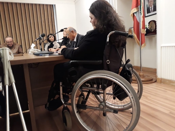 ثم القت سيلفانا لقيس كلمة اﻻتحاد اللبناني لﻻشخاص المعوقين حركيا عرضت فيها اهمية اشراك ذوي اﻻحتياجات الخاصة في قطاعات اﻻعمال واﻻنتاج ووسائل الدمج والتدريب على تحقيق هذه العملية والجدوى اﻻنسانية منها .
