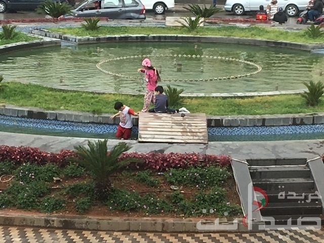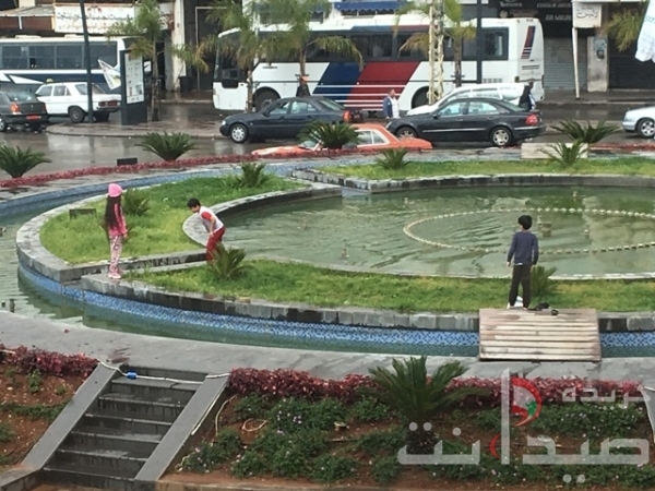أطفال يلهون تحت العاصفة والامطار في مدينة صيدا في بركة الماء وهذه الصور برسم اهالي الاولاد