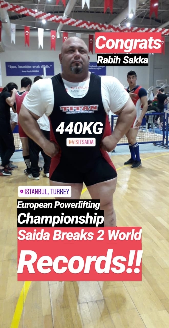 حقق البطل العالمي الصيداوي ربيع السقا رقم قياسي جديد برياضة السكوات عن 440 كلغ في بطولة اوروبا للقوى البدنية المقامة في تركيا وهو اعلى رقم في البطولة لجميع الفئات، كما حطم البطل الصيداوي رقمين قياسين عالميين.