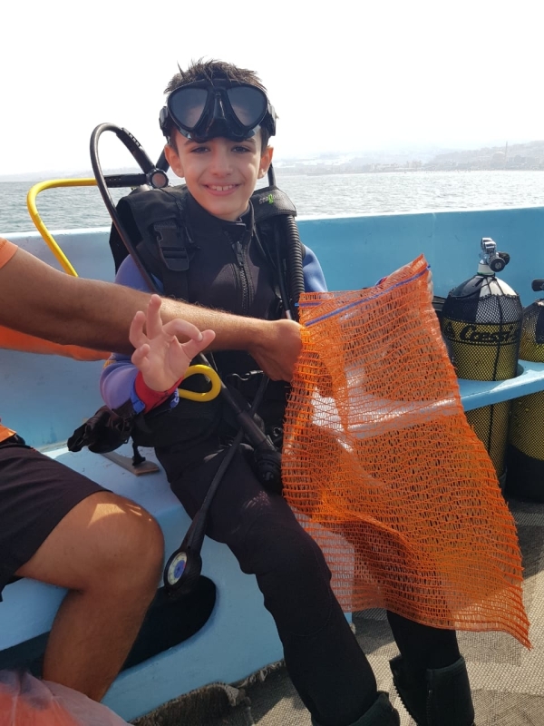 وكان اللافت مشاركة الطفل ماجد راني صادق الذي يبلغ من العمر ثماني سنوات في تنظيف قاع البخر ليكون أصغر غطاس يشارك بهذه الحملة ، حيث قام بالغوص الى عمق 10 امتار وشارك برفع كمية من الأوساخ من البحر.