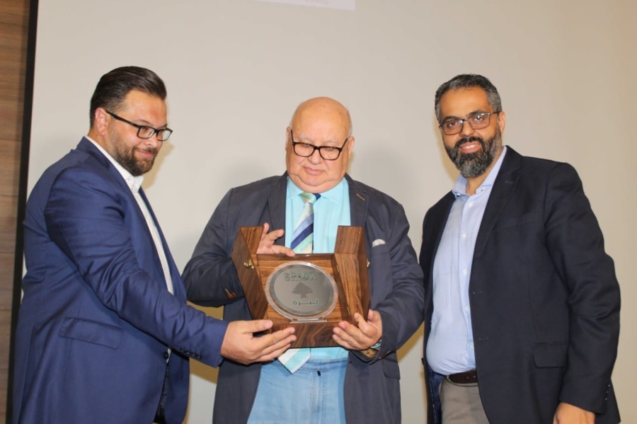 بعد ذلك قدم الدكتور صياد والسيد غزاوي درعا تكريميا لراعي الحفل المهندس السعودي يمثل شعار تطبيق " صيدا ليرة" ، الذي بدوره شكر للقيمين على المشروع مبادرتهم التكريمية منوها بجهودهم لتطوير التسويق التجاري إلكترونيا في صيدا ومنطقتها.