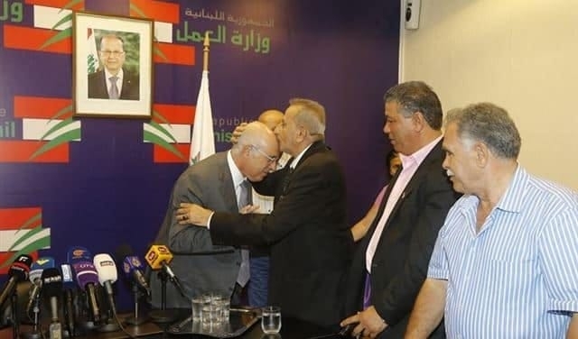 انتهى الاجتماع امس بين وزير العمل كميل أبو سليمان ووفد من الاتحاد العام للعمال الفلسطينيين في لبنان بكثير من الودّ والتفهّم، خصوصاً بعدما أوضح الوزير تفاصيل قرار الوزارة بشأن العمال الفلسطينيين والتسهيلات المخصصة للحصول على إجازة العمل التي تحمي حقوقهم، وبادر رئيس الاتحاد أبو يوسف العدوي إلى تقبيل رأس أبو سليمان قبل مغادرته.